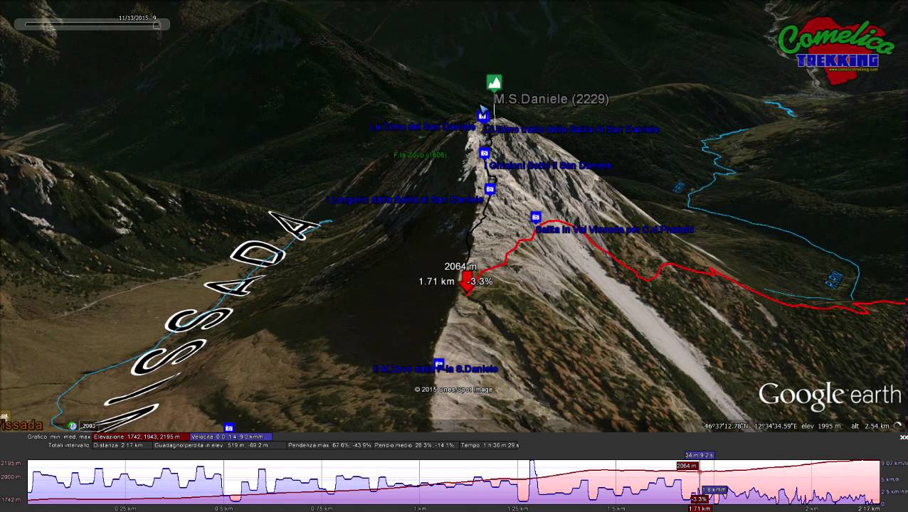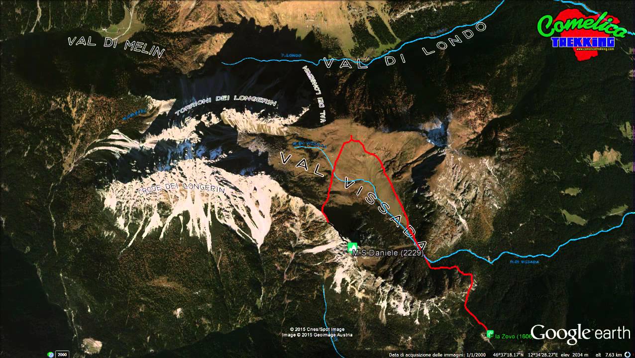 .da S.la dei Pradetti Da Sud-Ovest il Monte San Daniele puo’ essere affrontato partendo dalla Sella dei Pradetti. Questa via prevede dapprima l’attraversata del Monte Zovo. Si puo’ salire dall’abitato di Costalissoio e, dopo aver lasciato l’auto in localita’ La Baita, si continua a salire su strada forestale asfaltata e ripida lungo il Bosco dei Giavi fino a raggiungere (1610 m s.l.m.) ed attraversare il Coston di Sasso Grigno (1834 m s.l.m.); da qui si passeggia in falso piano avvicinando il M. Zovo fino a raggiungere il bivio per Costa (1896 m s.l.m.) dove si scende in direzione Nord-Est fino alla quota di 1757 m s.l.m. della Sella dei Pradetti, percorrenza 10min in auto e 1h30min a piedi (6,2Km e 7,7Km). Alla Sella dei Pradetti si puo’ salire anche dall’abitato di S. Nicolo’ di Comelico. In automobile si raggiunge Costa, fraz. di S. Nicolo’, e si sale per boschi di abeti lungo una strada asfaltata fino a raggiungere la localita’ Fronta’ (1573 m s.l.m.), percorrenza 16min-8,8 Km. Abbandonata l’auto si sale per prati lungo una strada sterrata fino al bivio per Costalissoio, sotto la cima del M. Zovo (1896 m s.l.m.), da qui si scenda alla Sella dei Pradetti (1757 m s.l.m.), percorrenza 1h-4,3Km.